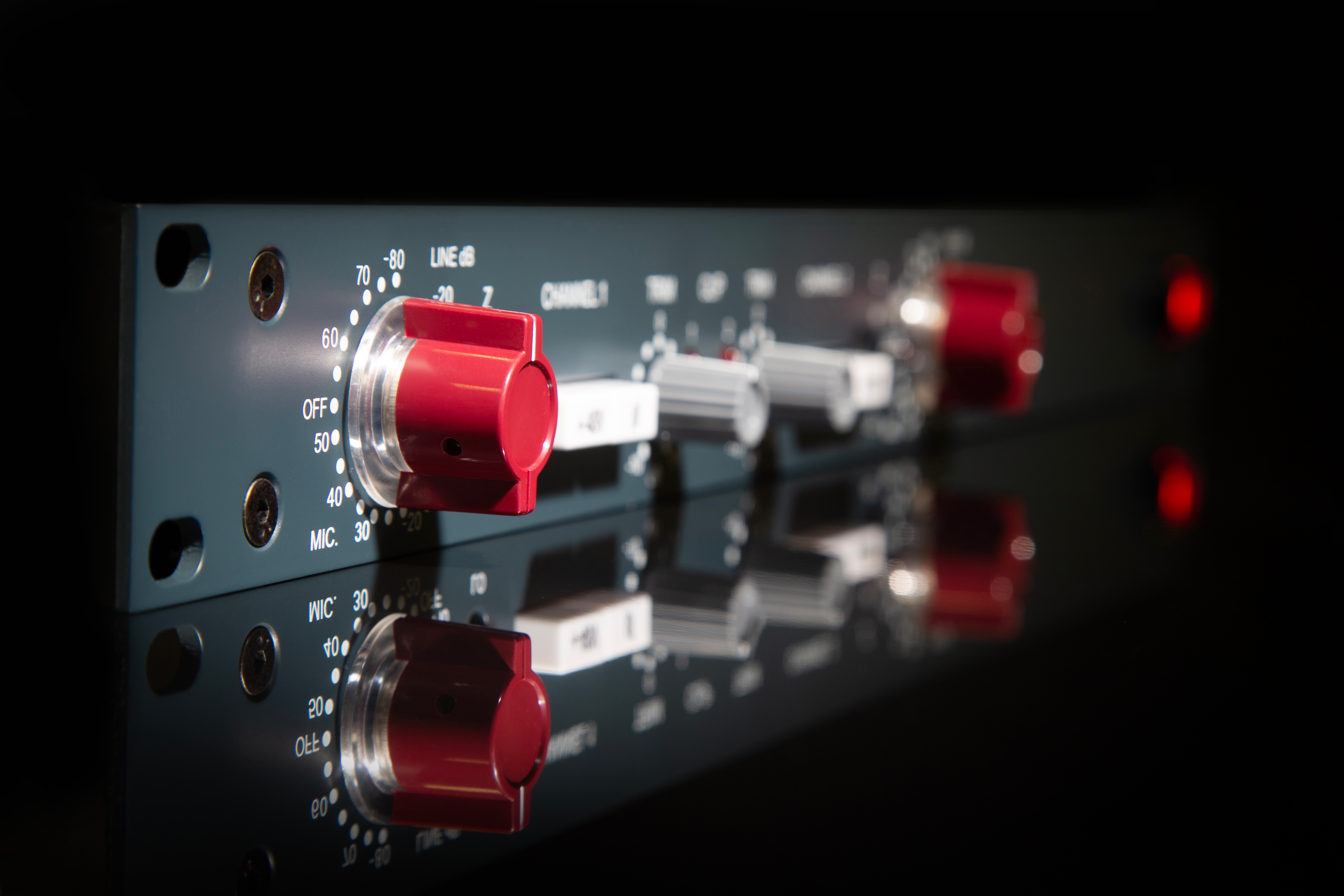 The classic 5dB stepped Elma switch delivers accurate gain levels throughout the gain range. This unique layout means there is no need for a mic/line switch as the pot itself selects the preamp and input. Three distinct gain stages provided by two independent transistor-based preamplifiers provide gain for any DI, line input or microphone signal.